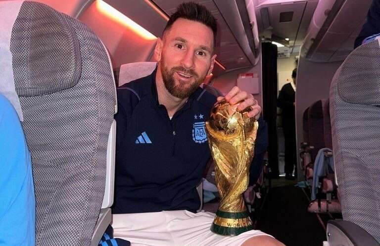 El primero fue el “Dibu” Martínez quién continuó con el chiste y mientras abrazaba la Copa manifestó: “Le pude hacer upa”. Aunque sin comentarios, Messi también aprovechó mientras el avión cargaba combustible y subió una foto con el trofeo.