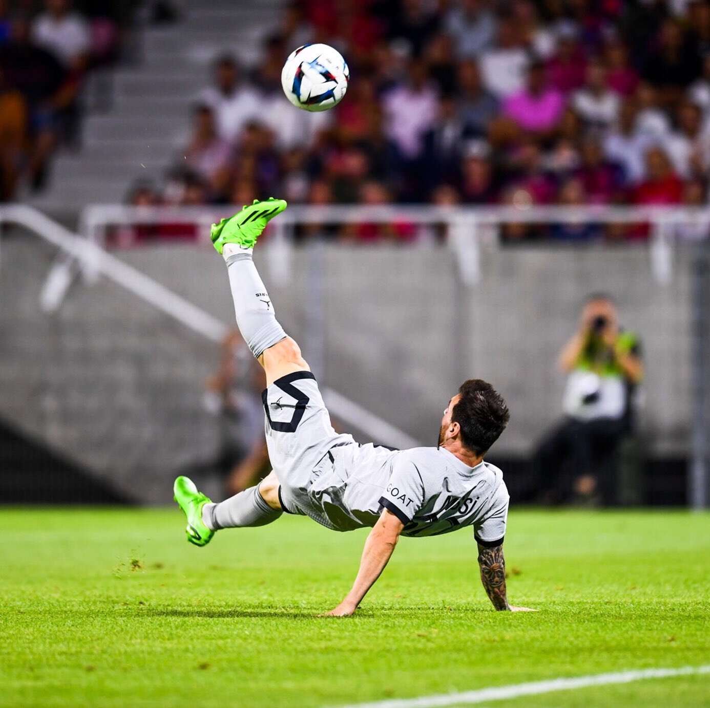 Messi, que jugó en un muy buen nivel a lo largo de todo el encuentro, marcó su primer tanto a los 35 minutos del segundo tiempo luego de conducir un contragolpe y armar una buena pared en el área con su gran socio, el brasileño Neymar Jr. Y a los 41 minutos del complemento culminó el recital con un gol para el recuerdo: tras recibir un buen pase en profundidad de Leandro Paredes, que entró en el complemento, el astro argentino paró la pelota de pecho y, sin que tocara el piso, definió de chilena sobre la cabeza del arquero Mory Diaw.
