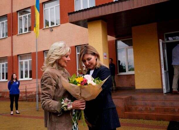 La esposa del presidente Joe Biden estuvo acompañada por la primera dama de Ucrania, Olena Zelenska, junto a quien visitó una escuela que se utiliza como refugio para civiles desplazados, entre ellos niños.