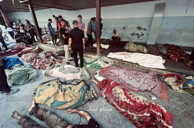 Los aviones de guerra israelíes atacaron la escuela Al-Tabi’in en el barrio Al-Daraj en el centro de la Ciudad de Gaza, mientras que las personas desplazadas en la escuela estaban realizando la oración Fajr.