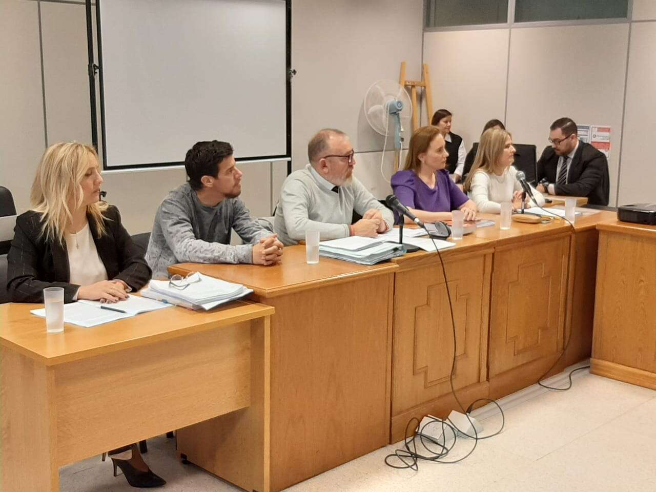 La audiencia es encabezada por Mauricio Piombi y María Schijvarger, integrantes del TIP. De acuerdo al procedimiento que regula el debate en el TIP, hablará la fiscala Verónica Ferrero y luego la defensa de las condenadas. También participará la querella.