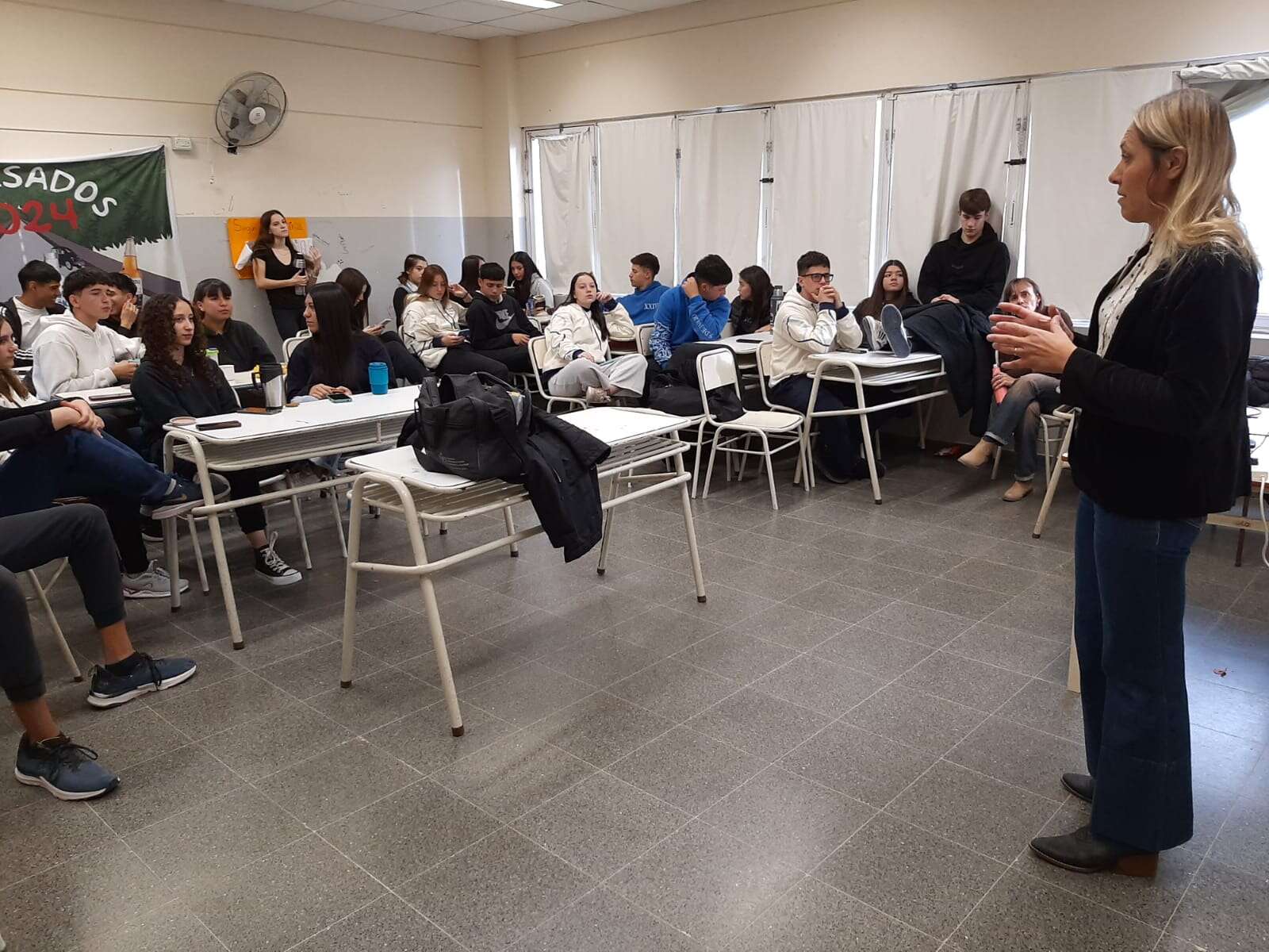 Los asistentes a la disertación ”“que estuvieron acompañados por la docente Celia Jacob”“ fueron alumnos/as de sexto año turno mañana de las modalidades Sociales y Economía y Administración.