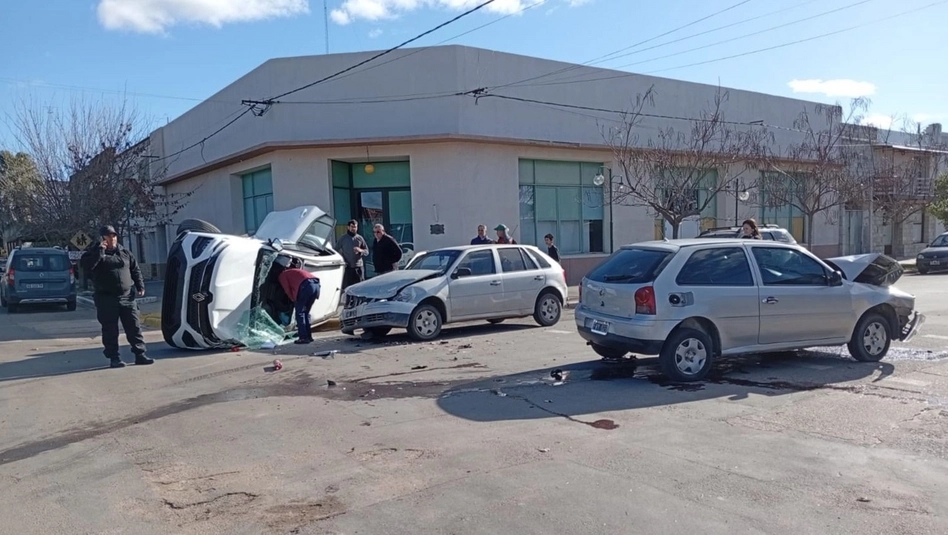 Una mujer de Quemú Quemú fue trasladada al Hospital Gobernador Centeno de General Pico luego de protagonizar un vuelco tras un choque múltiple ocurrido en pleno centro de la localidad. El siniestro vial se produjo ayer por la tarde, frente a una institución educativa ubicada en la intersección de Mitre y Boulevard 9 de Julio.