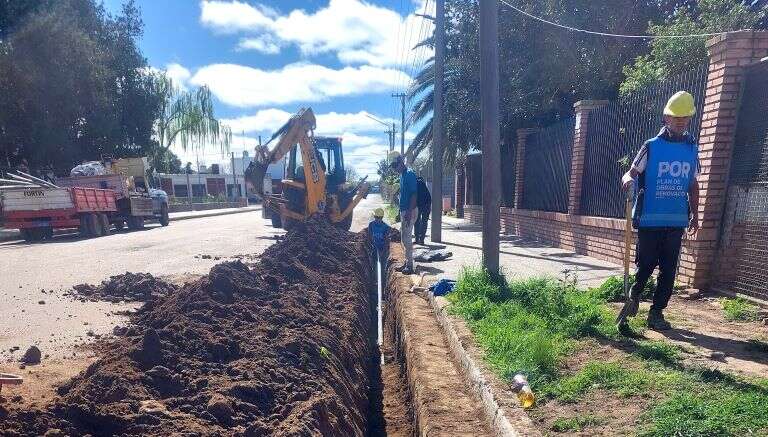 ”Llevamos más de 10 mil metros de cañería colocados, son 21.000 metros a colocar, ya realizamos unas 200 conexiones domiciliarias, el terreno donde trabajamos en un 70 % es todo tosca, se coloca el caño se hace una cama de 10 cm de  arena  por debajo y unos 20 cm por arriba del mismo de arena” explicó a la Agencia Provincial de Noticias uno de los responsables de la empresa.