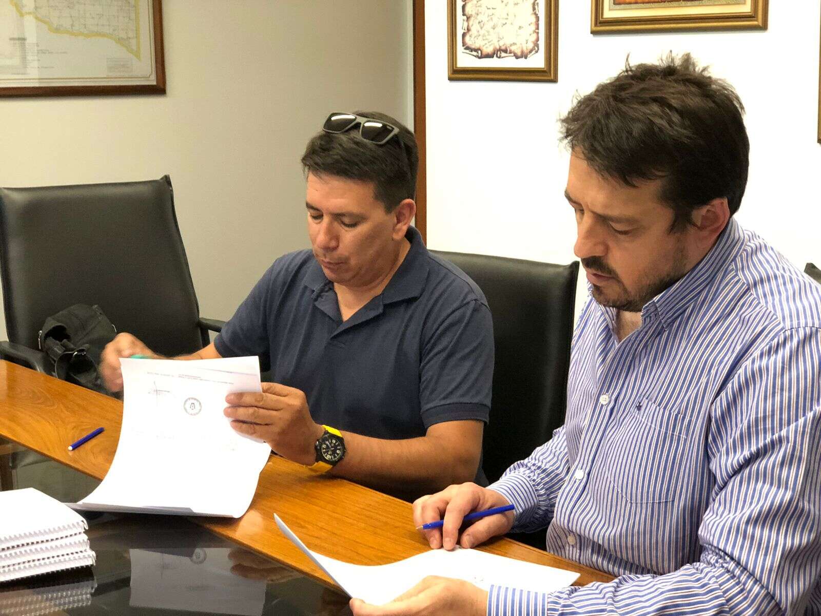 En la Dirección Provincial de Vialidad, su titular Rodrigo Cadenas y el presidente de la empresa Servicios Workmen Daniel García, firmaron el contrato de inicio de la obra de iluminación en intersecciones de Ruta nacional 35 y Rutas provinciales 24, 3 y 1.