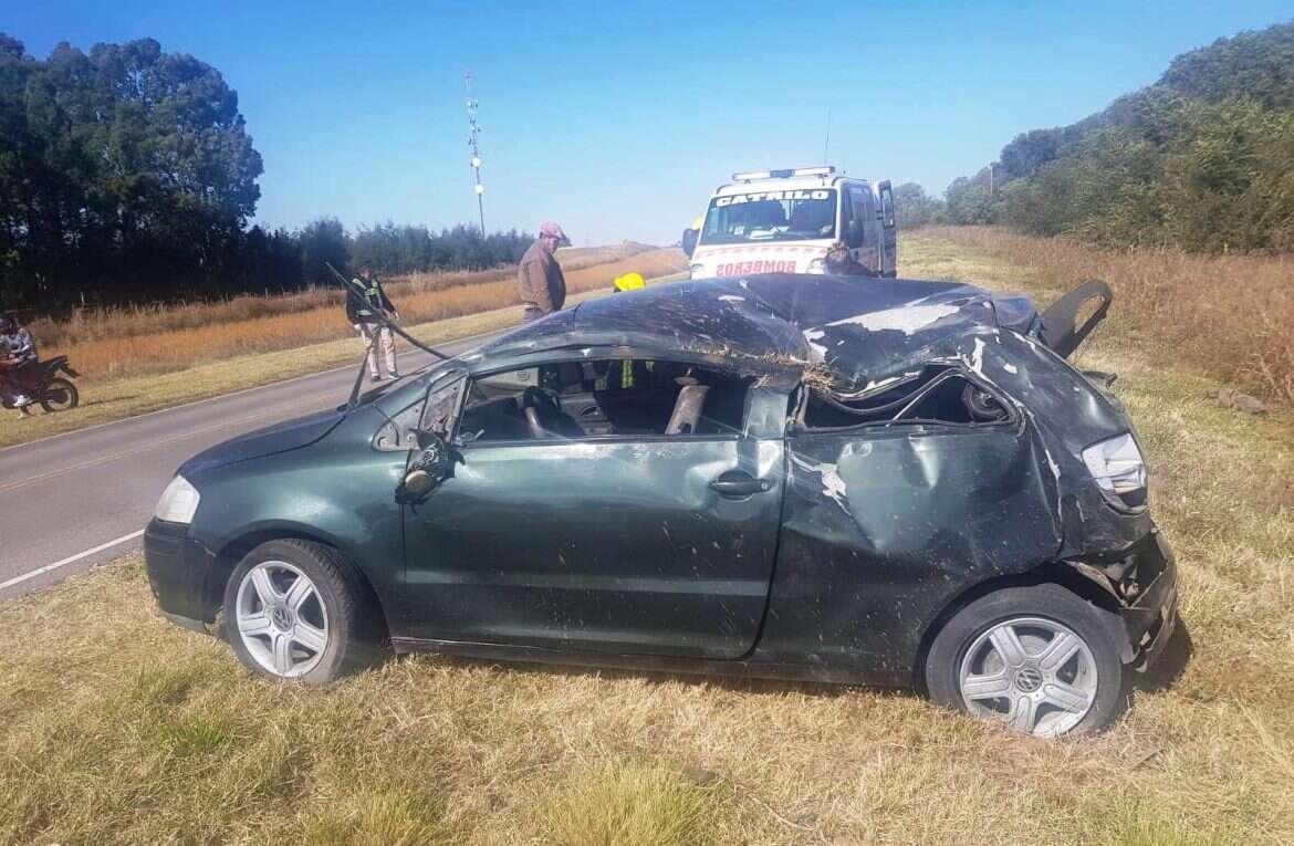 El automóvil Volkswagen Fox, por causas que se investigan, se despistó y volcó. En el vehículo viajaban cuatro hombres, los cuales resultaron heridos, dos de ellos con importantes traumas.