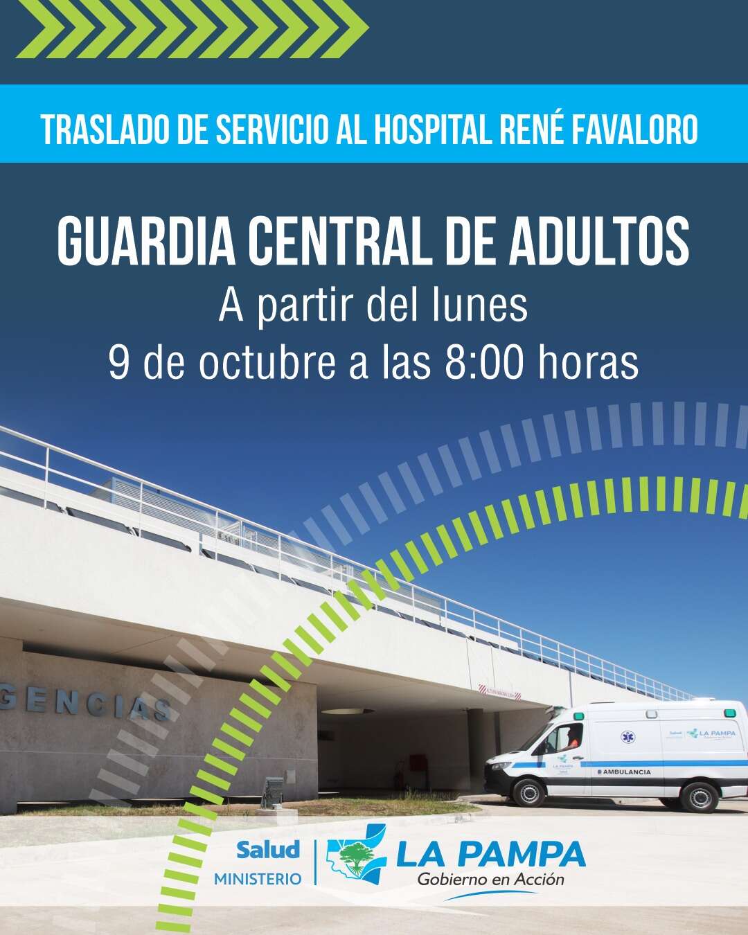 En el marco de la puesta en funcionamiento progresiva del Hospital de Complejidad Creciente “René Favaloro”, el Ministerio de Salud comunicó que se dejará operativa, a partir del lunes 9 de octubre a las 8, el servicio de guardia general para adultos.