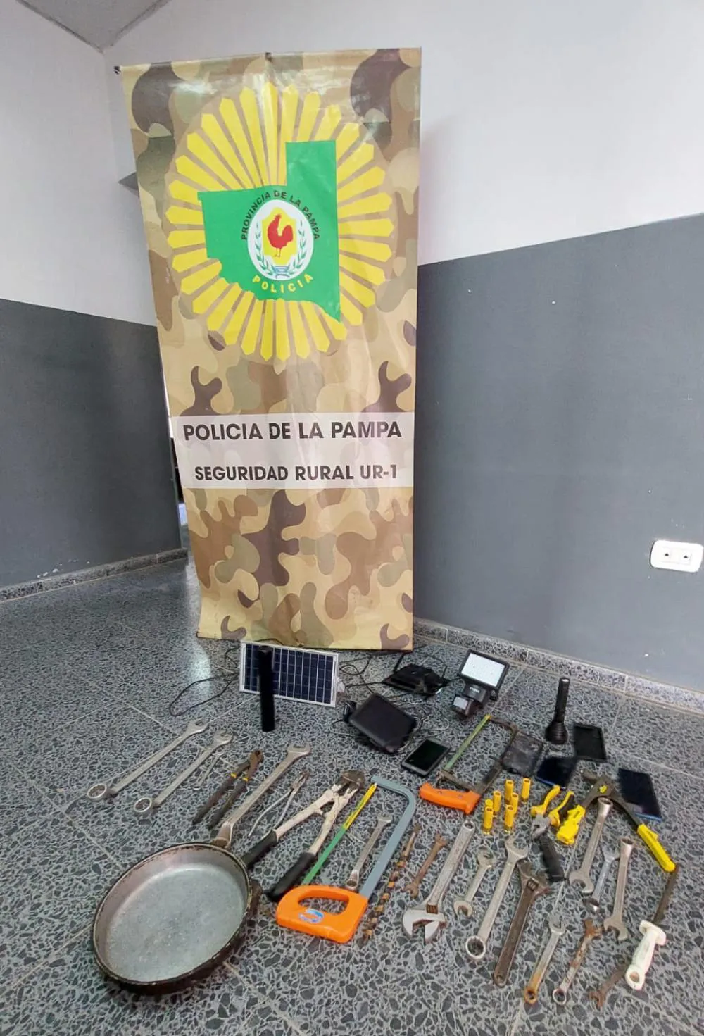 Tras la denuncia, el personal de Seguridad Rural comenzó la investigación y realizó un allanamiento el día martes en Santa Rosa. Al ingresar a la vivienda del sospechoso, los efectivos policiales no encontraron las herramientas de mayor tamaño pero sí un sartén que fue inmediatamente reconocido por el damnificado. También detallaron que las herramientas de mano lograron ser identificadas porque estaban marcadas por el dueño.