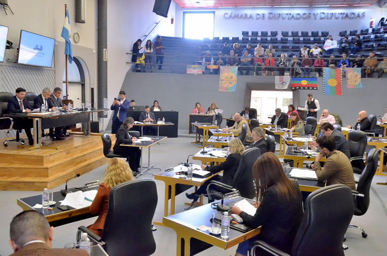 “En apoyo a las comunidades aborígenes y en el marco tanto de la ley que declara de interés nacional la atención y apoyo a los aborígenes y a las comunidades indígenas existentes en el país, como del artículo que en la Constitución de La Pampa reconoce la pre existencia de los pueblos indígenas, el Estado provincial considera oportuno la transferencia gratuita de un inmueble de su propiedad ubicado en Parera, a la comunidad Rankül Nahuel-Auca y de otro ubicad en General Acha, a la comunidad Ñancufil Calderón”, informó a sus pares el diputado Fabio Avendaño y, una vez que el presidente de la Legislatura, Mariano Fernández, sentenció que se aprobaba con fuerza de ley, hubo un estallido entre los representantes de estas comunidades que se encontraban en la tribuna destinada al público.