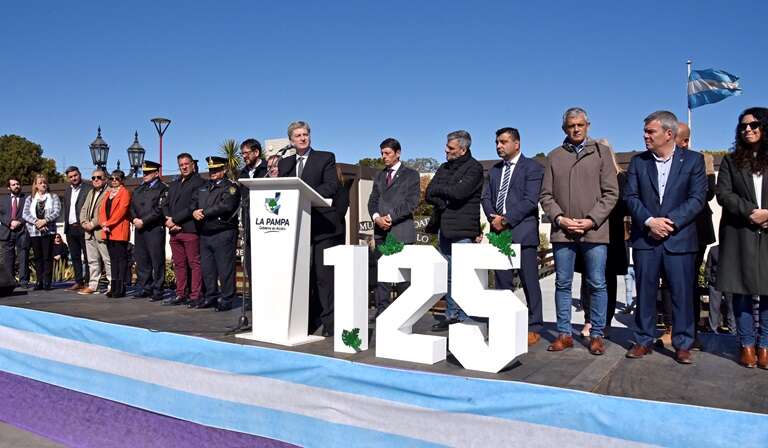 El gobernador Ziliotto recordó que tuvo la suerte de estar en Catriló, “hace exactamente 25 años, cuando esta ciudad festejaba su centenario. Participé como un ciudadano más, trabajando con la comisión organizadora”.
