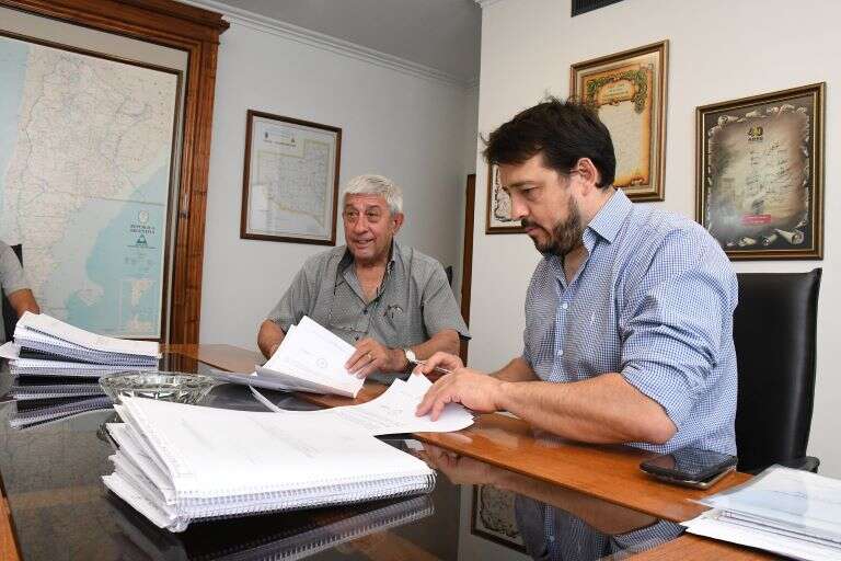 La rúbrica se llevó a cabo esta mañana en el despacho del presidente de la Dirección Provincial de Vialidad, Rodrigo Cadenas junto al empresario Omar Jubete.
