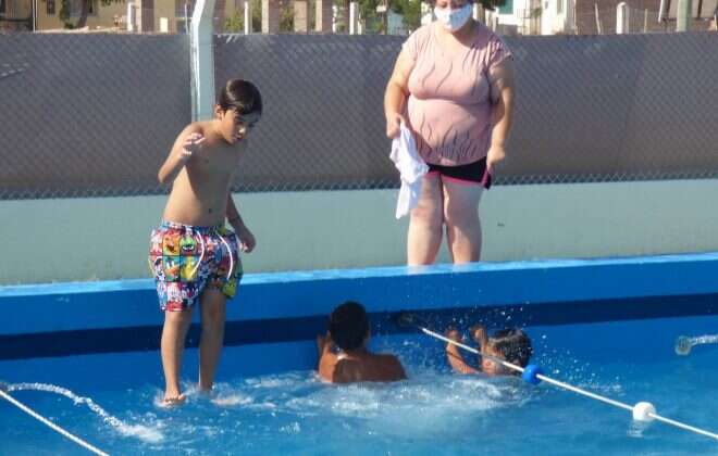 De esta manera las infancias y adolescentes disfrutan de las piletas como así también de otras actividades que programan quienes tiene a cargo las colonias, todo bajo la supervisión y el apoyo de los intendentes municipales y su equipo de trabajo. Como es habitual, técnicos del Ministerio de Desarrollo Social visitaron ambas localidades para controlar que todo se lleve a cabo bajo las condiciones convenidas con el Gobierno provincial. En este caso Soledad Martínez y Alfredo Lucero fueron los responsables de controlar las piletas y el trabajo.