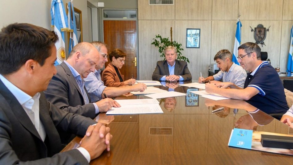 En Casa de Gobierno, el gobernador Sergio Ziliotto encabezó la firma de cinco convenios del Programa para el Mantenimiento de Canales (ProManCa), destinados a optimizar el escurrimiento de excedentes hídricos y reducir riesgos de inundación en Miguel Cané, Lonquimay, Macachín, Pichi Huinca y Speluzzi.