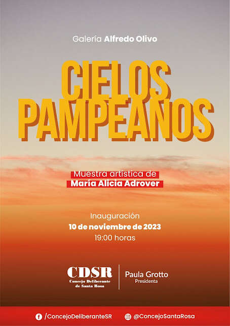 Este viernes 10 a las 19 horas, se inaugurará la muestra “Cielos Pampeanos” de la artista María Alicia Adrover, en la Galería Alfredo Olivo del Concejo Deliberante de Santa Rosa.