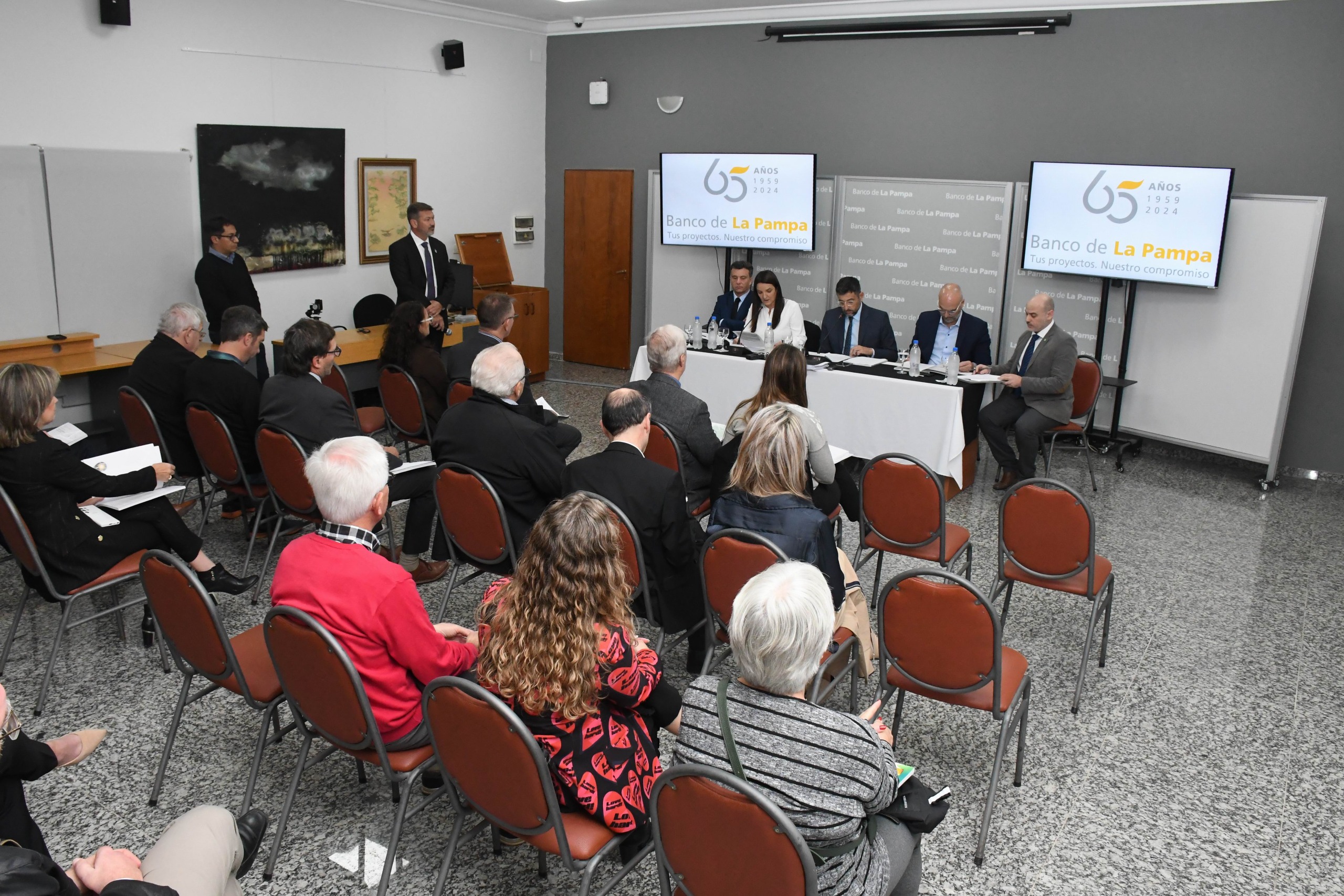 Este miércoles se llevó a cabo la Asamblea General Ordinaria y Extraordinaria del Banco de la Pampa en el salón de Pellegrini N° 366 de la ciudad de Santa Rosa. Estuvo presidida por Alexis Iviglia y participaron en representación de las acciones Clase A (capital público), el ministro de Hacienda Guido Bisterfeld y por las acciones clase B (capital privado) representantes de instituciones y otras personas accionistas a título particular.