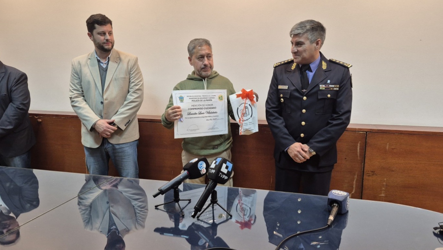 Durante la ceremonia, se entregó el reconocimiento al “Compromiso Ciudadano” a Leandro Lucio Villalabeitía, vecino que en la mañana del jueves 10 de julio advirtió una situación sospechosa mientras transitaba por la intersección de las Rutas Nacional 5 y Provincial 1. Ante la imposibilidad de comunicarse telefónicamente por falta de señal, Villalabeitía regresó hacia una patrulla de Seguridad Rural para informar lo observado. Con notable claridad, marcó el lugar exacto e hizo señas de luces para guiar a los agentes, quienes lograron localizar al evadido oculto entre unos árboles.