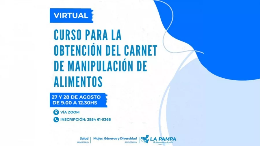 Se llevará a cabo los días 27 y 28 de agosto de 9 a 12:30 con el objetivo de obtener el carnet de Manipulación Segura de Alimentos.