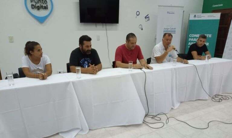El intendente macachinense, Jorge Cabak, y el subsecretario de Deportes, Ceferino Almudévar, encabezaron la presentación de la competencia en el propio polideportivo, acompañados por el viceintendente, Lucas Palavecino, el director de Deportes provincial Alejandro Bagatto y la directora de Deportes de la comuna macachinense, Julieta Alvarez.