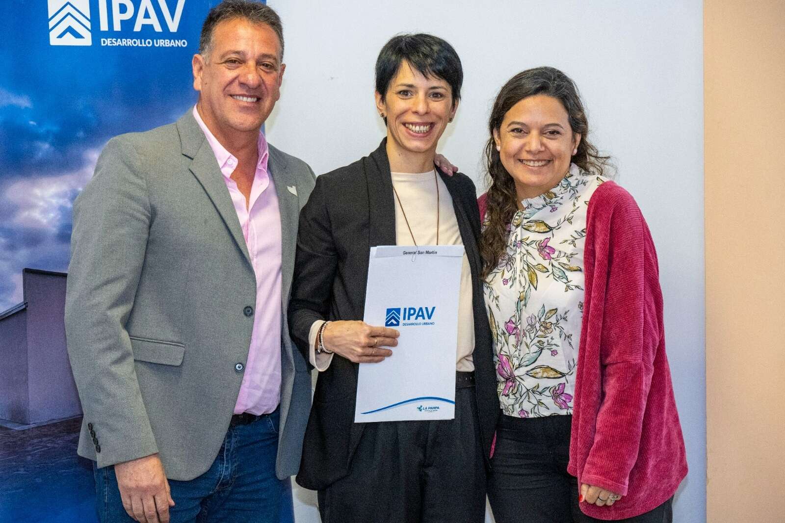 El acto tuvo lugar en el Auditorio “Ana Fiscella” del Instituto Provincial Autárquico de Vivienda (IPAV) y estuvo encabezado por el ministro de Gobierno y Asuntos Municipales, Pascual Fernández, y la presidenta del IPAV, Erica Riboyra. También contó con la presencia de los 35 intendentes e intendentas que firmaron los convenios.