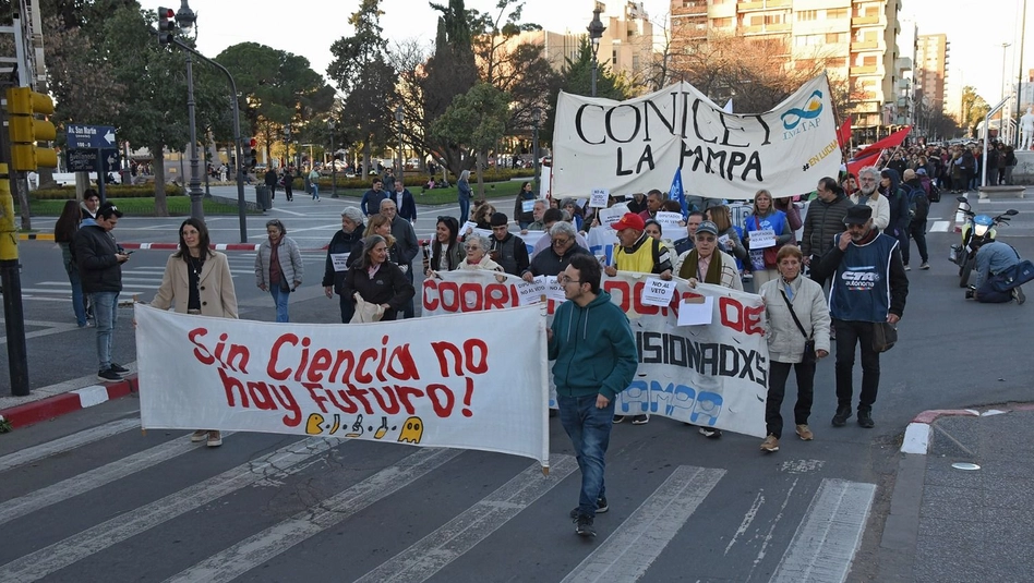 Las calles de Santa Rosa fueron escenario de una masiva movilización encabezada por jubilados, investigadores del Conicet, docentes, estudiantes y organizaciones sindicales, que rechazaron los vetos presidenciales y el ajuste al sistema científico y educativo aplicado por el gobierno de Javier Milei.