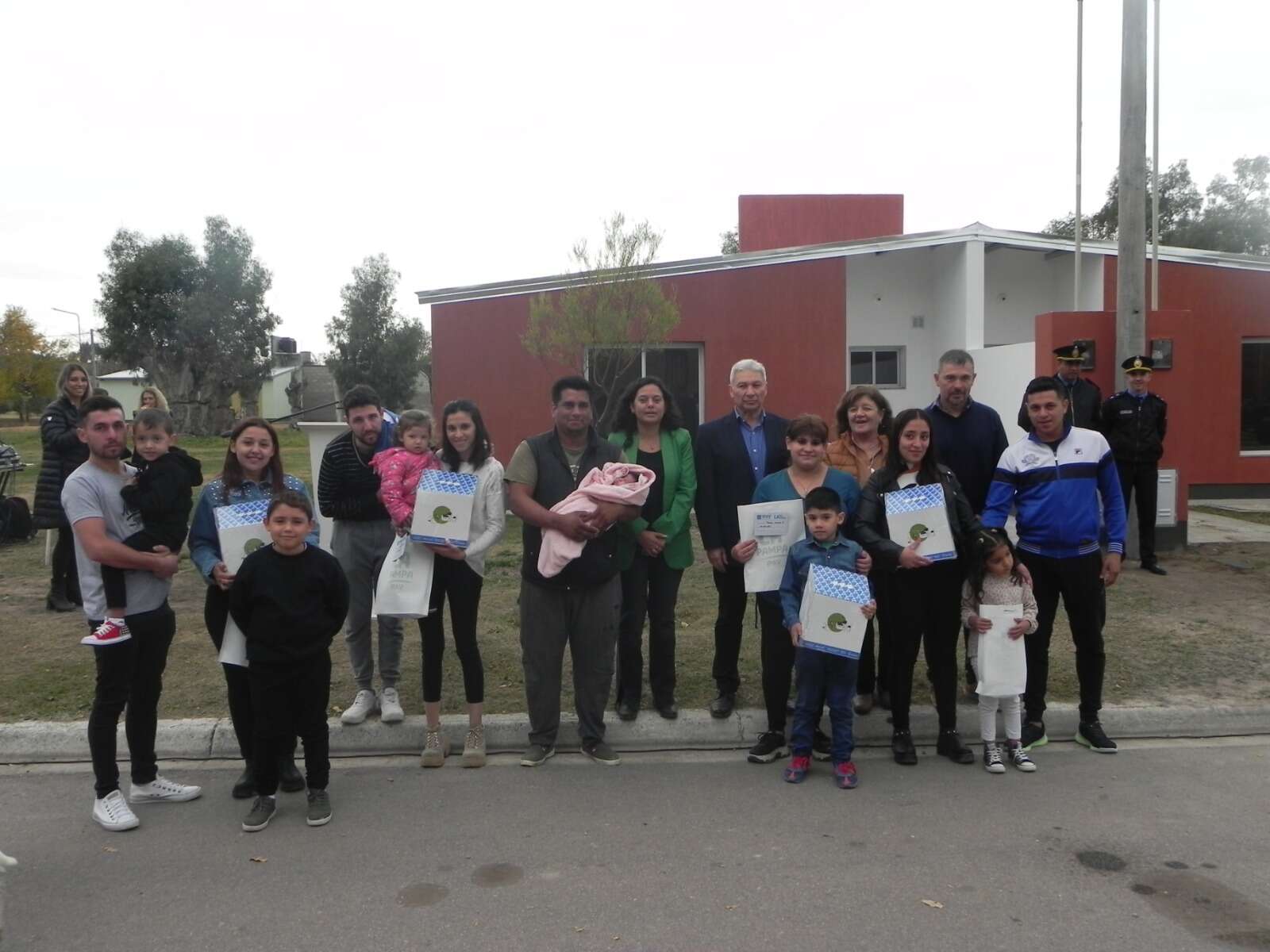 El funcionario provincial estuvo acompañado por el intendente local, Germán Wilberger, y la gerenta de Planificación y Adjudicaciones del organismo, Erica Riboyra. Además, cada familia recibió una biblioteca del Programa “Libros y Casas”.