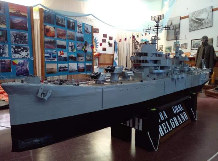 Una de las piezas centrales será la maqueta del Crucero ARA General Belgrano que fue realizada en cartón por el artesano Juan Carlos Obando y donada al Centro de Veteranos de Guerra de La Pampa.