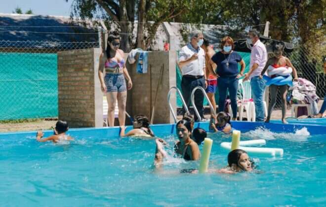 “Las capacitaciones también se hacen este verano en módulos autogestionados, a través de la Plataforma de la Fundación Banco de La Pampa, con tres opciones básicas: Cuidado de Niñas, Niños y Adolescentes, adultos y demás, sobre RCP y primeros auxilios, y otro de mantenimiento de predios, piletas y lugares donde se desarrollan las tareas”, detalló más adelante.