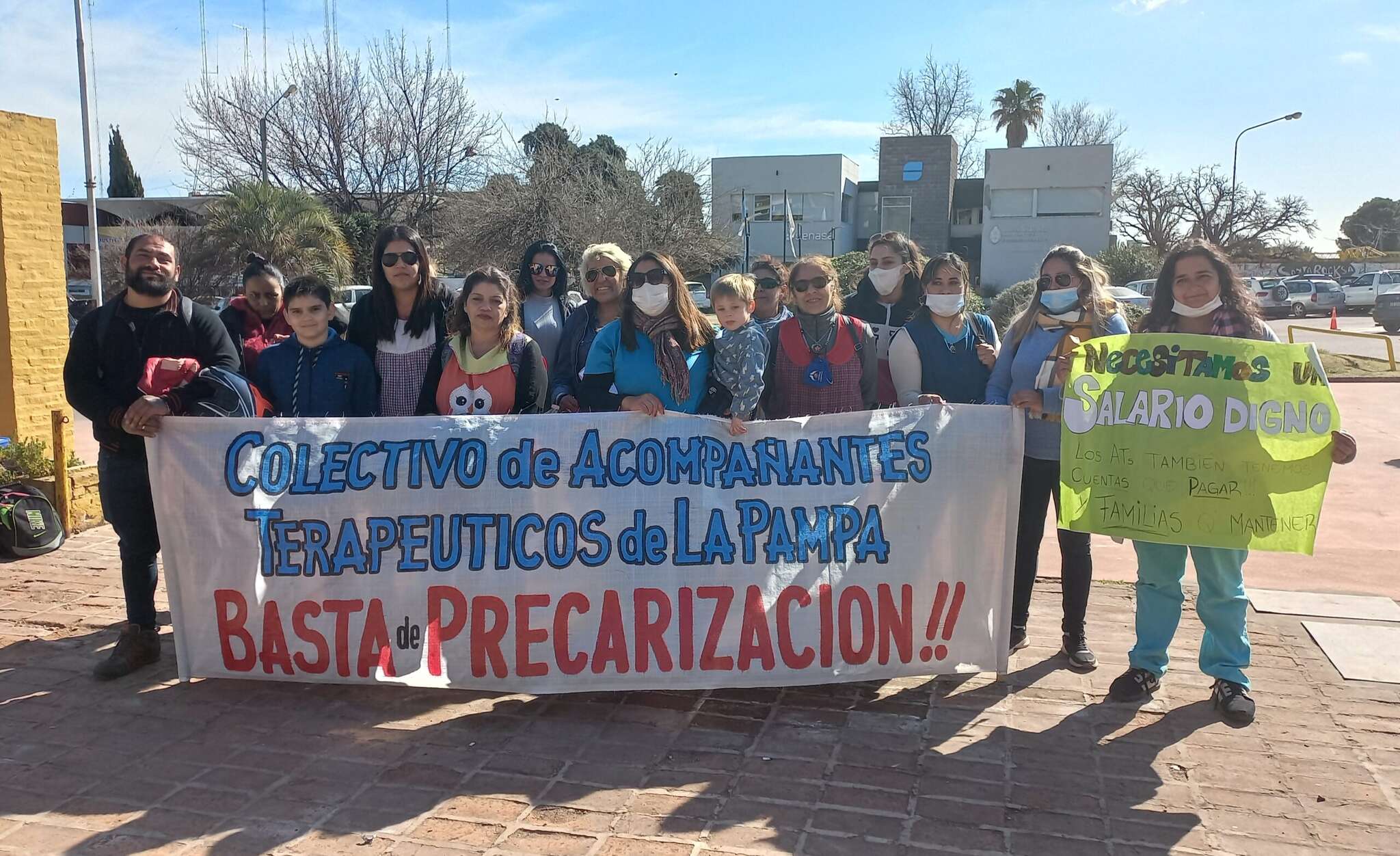 Un grupo de trabajadoras y trabajadores del Colectivo de Acompañantes Terapéuticos de La Pampa se acercaron a Casa de Gobierno para presentar un petitorio al gobernador por reclamos para el sector.