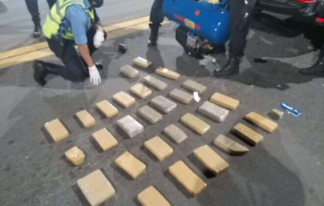 De esta forma, se solicitó la presencia del Grupo de Control de Tráfico Ilícito de Drogas que al arribar a Catriló, se hizo cargo de una nueva requisa del automotor con el perro entrenado para la detección de estupefacientes de nombre “Aldo”, corroboran la marcación del otro can. En la misma, se hallaron panes de marihuana en el interior del auto, algunos estaban escondidos en la compuerta de la caja y los restantes dentro de un compresor de color azul.