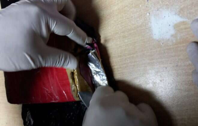 Siguiendo los recaudos legales del caso se realizó una búsqueda minuciosa en el automóvil, donde se halló oculto dentro del tapizado del asiento delantero del acompañante, dos panes de cocaína que en su totalidad arrojaron un peso de 2,100 kilogramos. Los mismos fueron secuestrados al igual que dos aparatos de telefonía celular, la suma de $29.000 y documentación importante para la continuidad de la causa.