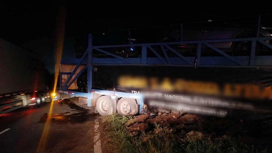 El siniestro ocurrió alrededor de las 0.40 horas, en un tramo donde la banquina norte se encuentra descalzada. Según informaron fuentes policiales, el camionero mordió la banquina, perdió el control, cruzó de carril y terminó con el chasis atascado en la banquina sur, quedando parte del semirremolque sobre la ruta.