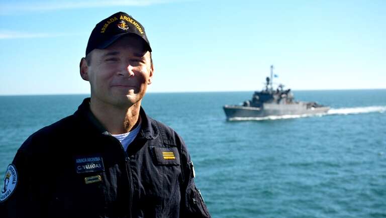 El Suboficial Principal Carlos Alberto Villegas tiene 49 años, 28 de los cuales los ha vivido en la Armada Argentina como radarista. Dejó su campo añorado en General Pico por una carrera profesional en el mar que, siente, le estaba predestinada en su vida. Este año, fue destinado como Suboficial de Unidad del destructor ARA “Sarandí”, Encargado del bienestar general de sus casi 200 tripulantes.