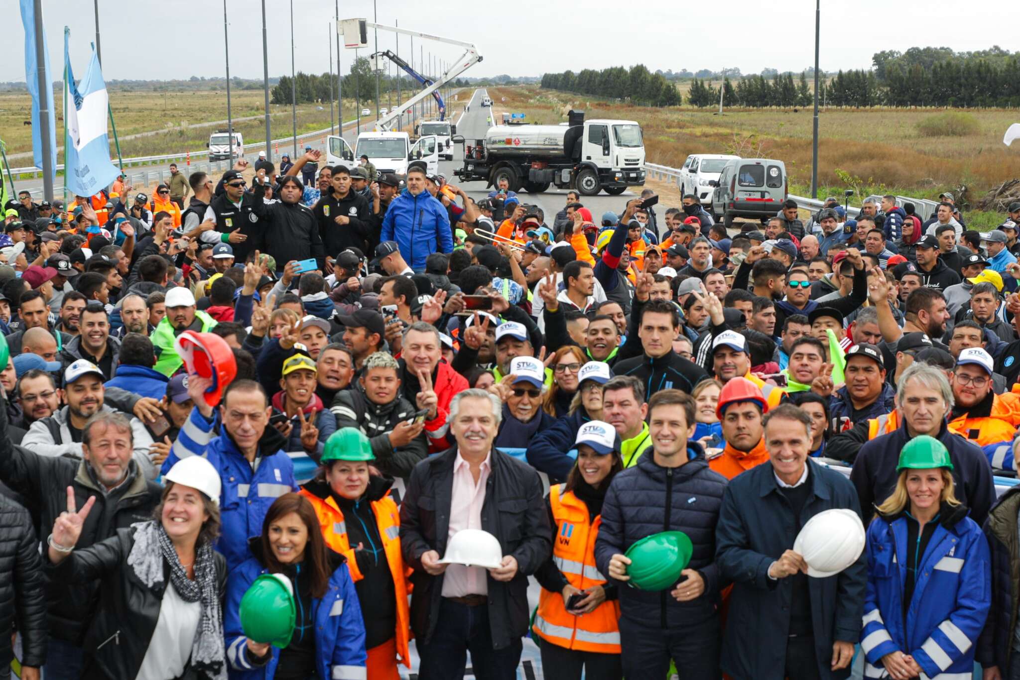 El Presidente celebró el trabajador 400 mil en la construcción en la obra de la Autopista Perón.