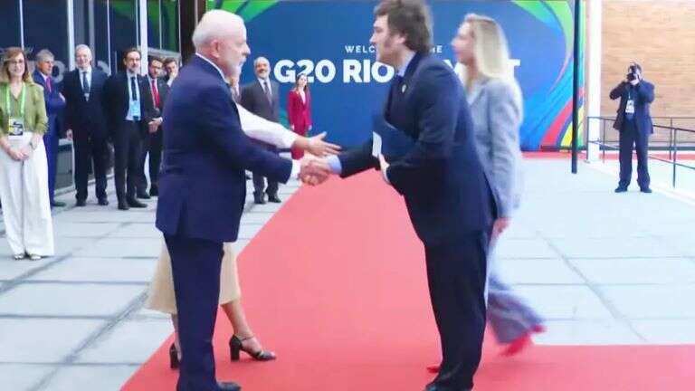El presidente Javier Milei arribó esta mañana al Museo de Arte Moderno de Río de Janeiro para dar asistencia a la Cumbre de Jefes de Estado de Grupo de los 20, donde fue recibido por su par de Brasil, Luiz Inació Lula da Silva, quien se mostró distante ante la visita.