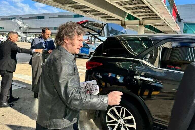 La llegada del líder libertario se dio en un marco de optimismo para La Libertad Avanza, ya que en la noche del jueves el oficialismo llegó a un principio de acuerdo con la oposición “dialoguista” luego de incorporar una serie de correcciones en los puntos más álgidos del proyecto de Ley Ómnibus que se debate en la Cámara de Diputados.