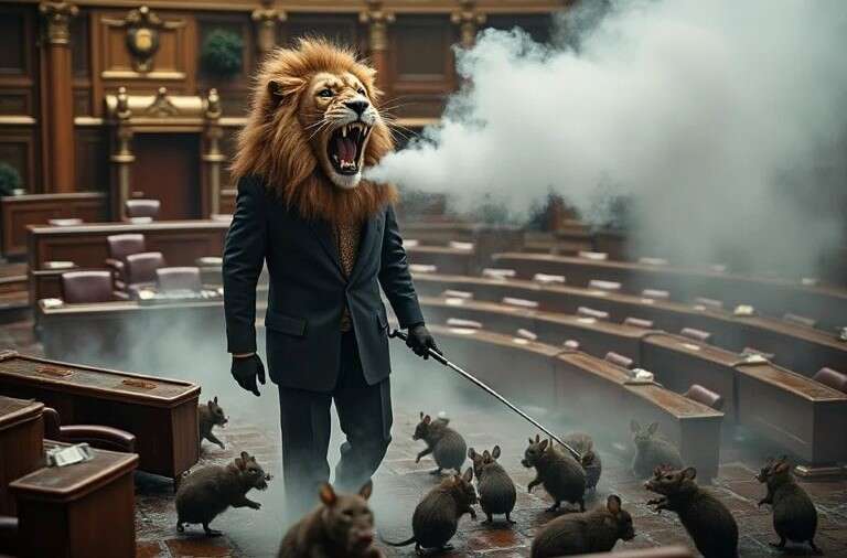 Milei acompañó la publicación con muy pocas palabras ya que la imagen se explica por si misma: un león en el Congreso con una fumigadora en la mano y ratas huyendo.