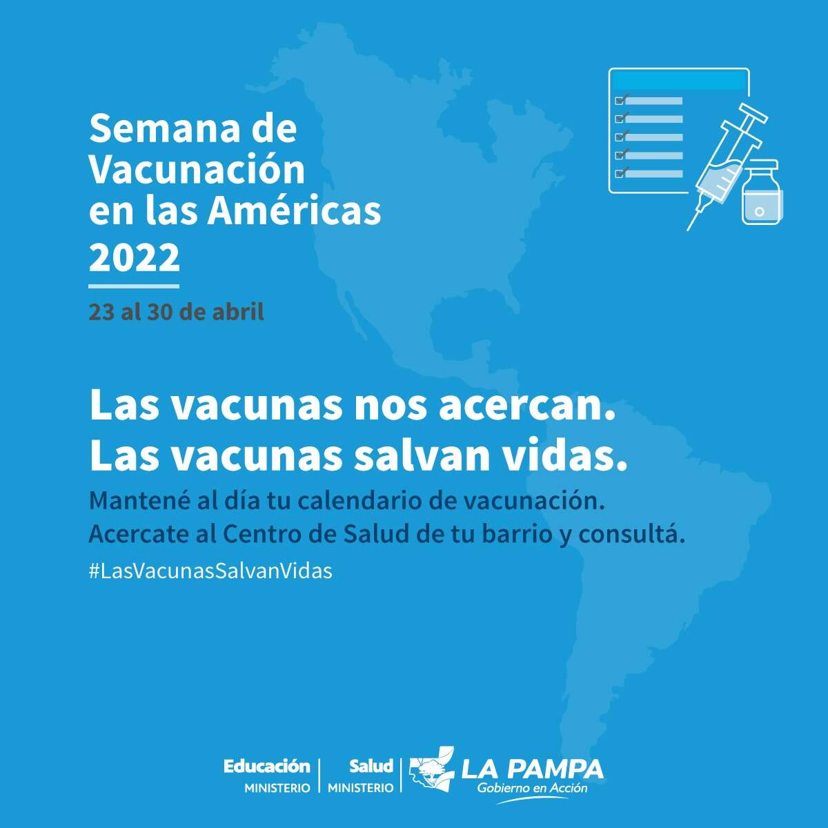 Desde el Ministerio de Salud de La Pampa se realizarán diferentes actividades de vacunación en la Provincia dirigidas a toda la comunidad. Sumado a esto desde el Ministerio de Educación y a través de sus diversas áreas, participan y acompañan en esta iniciativa con el objetivo de  fortalecer la comunicación a las familias sobre la importancia de contar con un calendario de vacunas actualizado de acuerdo a la edad y circunstancias de cada persona.