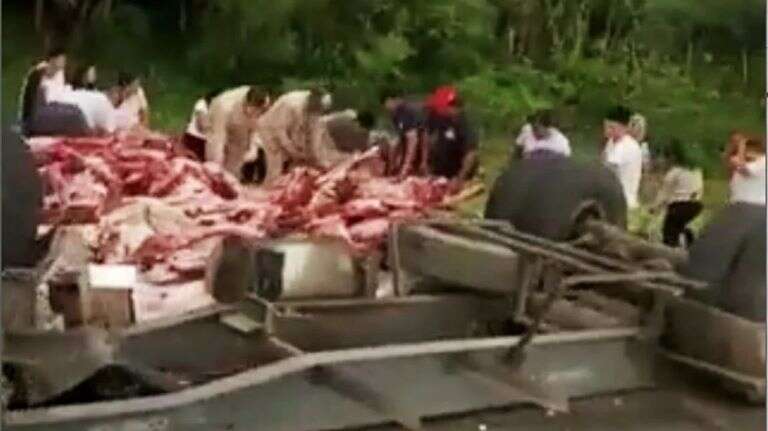 En ese sentido, eran diferentes cortes de carnes, en algunos casos vacas enteras, los cuales iban en el anexo refrigerante del vehículo que se abrió luego de que este volcara.